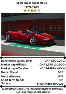The SP3 continues to perform strongly across the off-market space, with transaction values often exceeding CHF 5 M as collectors compete for the final allocation opportunities.